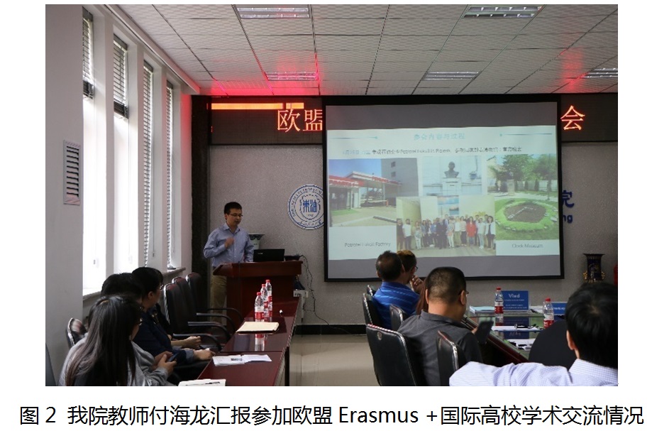 beat365官网教师付海龙代表3位出访罗马尼亚普洛耶什蒂石油和天然气大学教师发言。他首先汇报了参加欧盟Erasmus+国际高校学术与教育交流大会的基本情况,并着重谈了此次参加会议的收获和体会,充分展示了欧盟框架下,世界高校进行国际教育交流强调互动性和多元化的大趋势,用切身感受说明了beat365官网扩大国际合作与交流的必要性和紧迫性。