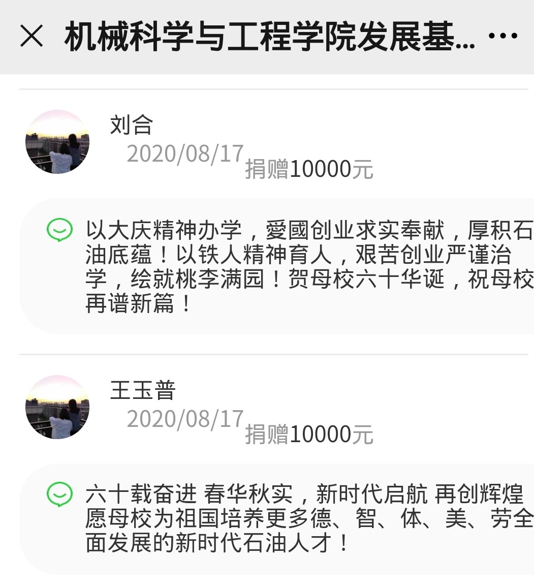 愿母校为祖国培养更多德、智、体、美、劳全面发展的新时代石油人才!