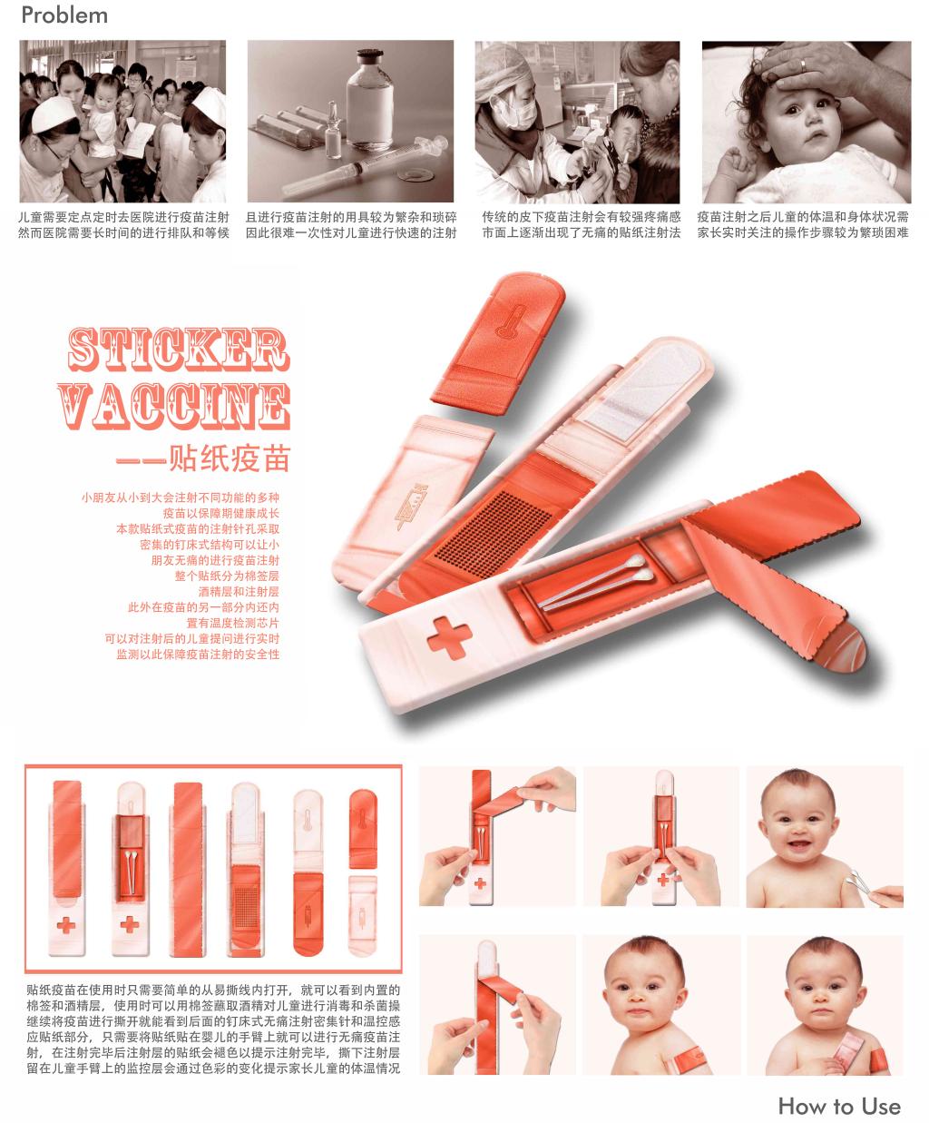 《贴纸疫苗》是2018年beat365英国官方网站高龙、王珈琦、刘凯、张青源、黄龙跃五位学生的创意设计作品,获得第四届全国大学生工业设计大赛黑龙江省赛区一等奖、国赛区三等奖。该作品还获得2019年黑龙江省互联网+大赛铜奖,第七届中国TRIZ杯大学生创新方法大赛三等奖。
