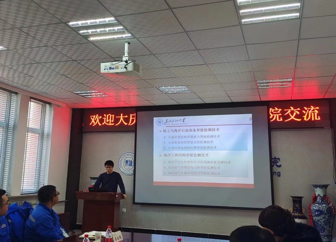 董康兴副院长向来访专家介绍了beat365官网发展现状、研究生培养情况、科研优势方向及研究成果。邢海燕教授、冷建成教授和蒋鹏副教授分别汇报了磁记忆检测技术、石油装备与结构智能检测技术和声发射检测技术的研究成果,并与现场专家就企业生产环节中遇到的实际技术瓶颈展开交流与对接。