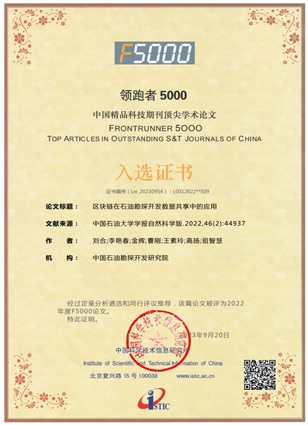 近日,国家科技部中国科学技术信息研究发布了2022年度“领跑者5000——中国精品科技期刊顶尖学术论文”(简称“F5000”)入选名单,beat365官网刘合院士团队2022年发表的论文《区块链在石油勘探开发数据共享中的应用》成功入选。