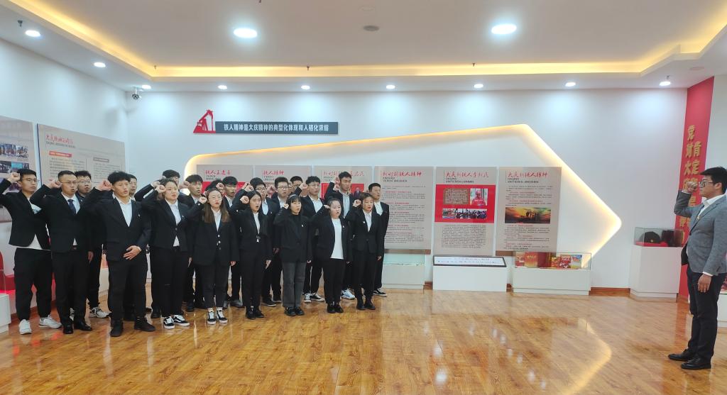 党员们在讲解员的带领下认真观看了展会中珍贵的会展文物资料、图书等展品,这些展品镌刻着石油工人埋头苦干、艰苦奋斗的场景,生动地再现了大庆油田波澜壮阔的创业历程。同时讲解员还为大家阐述了大庆精神的基本内容和时代内涵,带领同学们回顾历史、缅怀先辈,重温了一段段峥嵘岁月,进一步领悟了大庆精神的精髓。