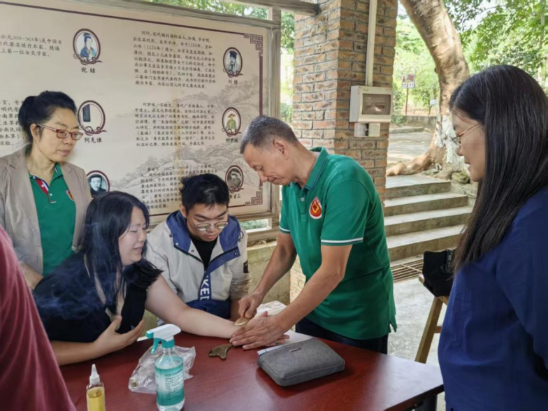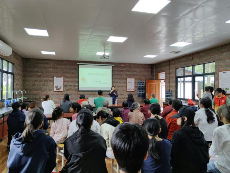 在健康科普环节,广州市第一人民医院中医治未病科主任邓聪博士作《秋冬养生与中医治未病》专题讲座,深入浅出地讲解了秋冬季节常见疾病的预防与调理要点。她指出,“中医药讲究防病于未然,‘治未病’理念特别适合农村居民的健康管理模式。”讲座结束后,邓聪博士与学校志愿者团队为村民提供义诊、推拿、艾灸及健康咨询服务,吸引百余名村民参与,现场气氛热烈,好评如潮。